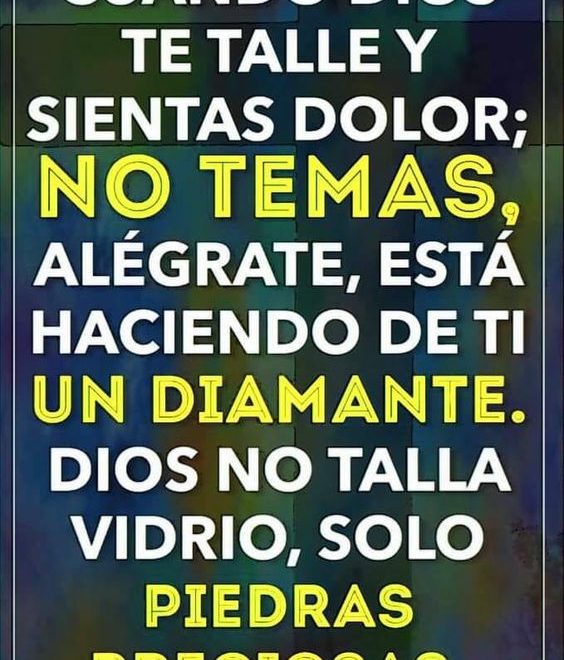 CUANDO DIOS TE TALLE Y SIENTAS DOLOR; NO TEMAS, ALÉGRATE, ESTÁ HACIENDO DE TI UN DIAMANTE. DIOS NO TALLA VIDRIO, SOLO PIEDRAS PRECIOSAS.